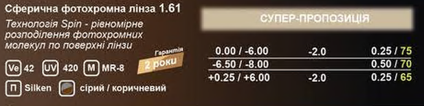Сферическая фотохромная линза 1,61 с сатиновым покрытием